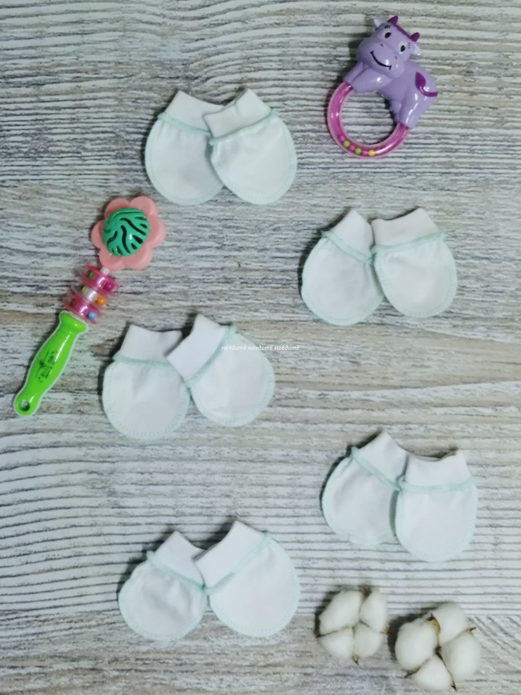 "МоёДитё" царапки кулирка белые + мята ЦК018 "Гардения" в Сочи