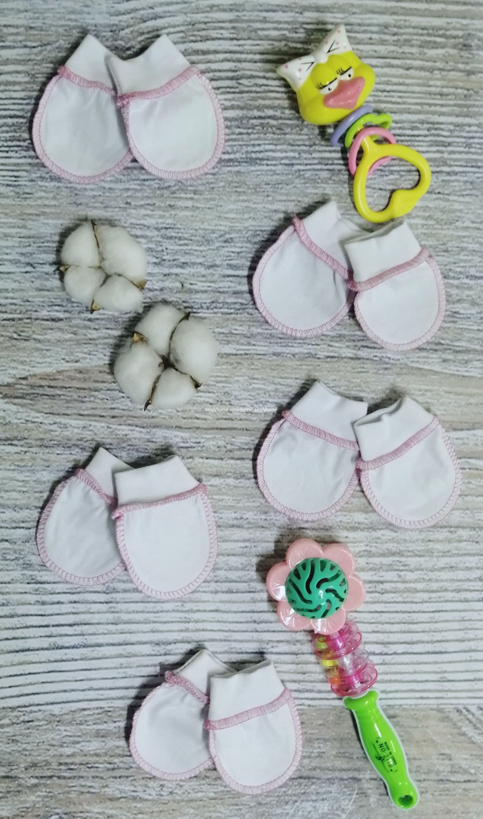 "МоёДитё" царапки кулирка белые с розовым ЦК018 "Гардения" в Сочи